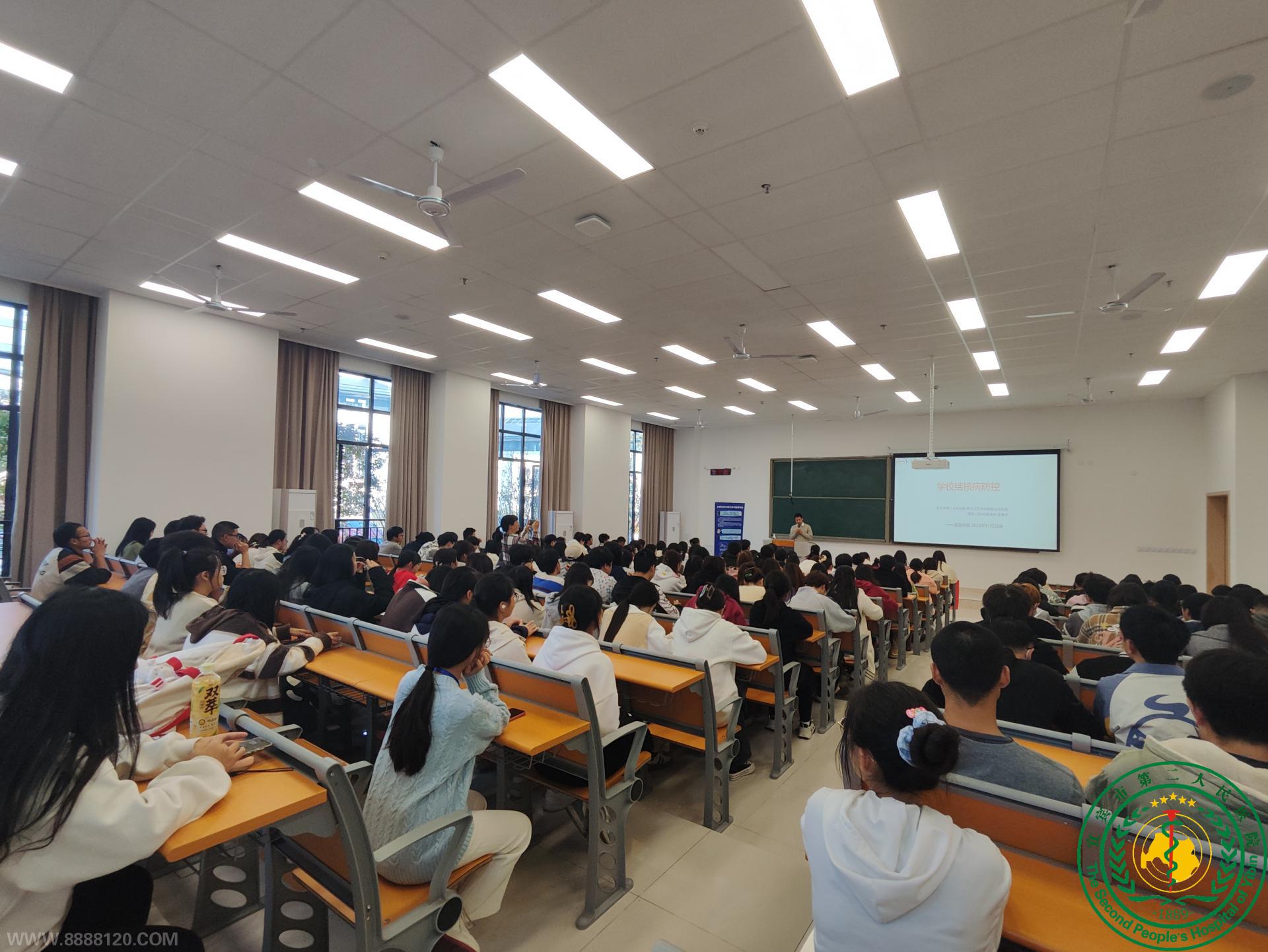2023年11月22日下午,我院感染二科夏粤华主治医师受宜宾学院临港校区邀请,在宜宾学院理学院教室为200余名在校大学生进行了2023年大学生结核病、艾滋病健康教育专题讲座。