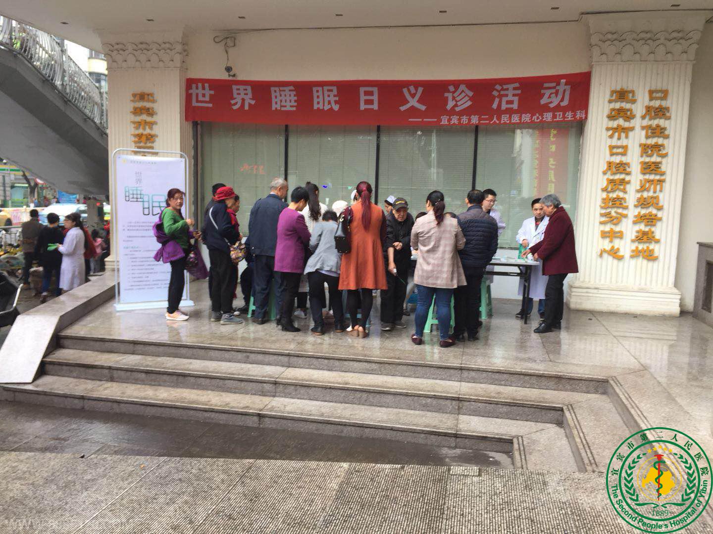 为了让广大群众了解睡眠,了解失眠的危害,了解失眠的可治疗,我们心理科医务工作人员在北大街宜宾二院门诊外举行了健康义诊活动。迎来了大量被失眠所困扰的群众的咨询。以下为现场照片。