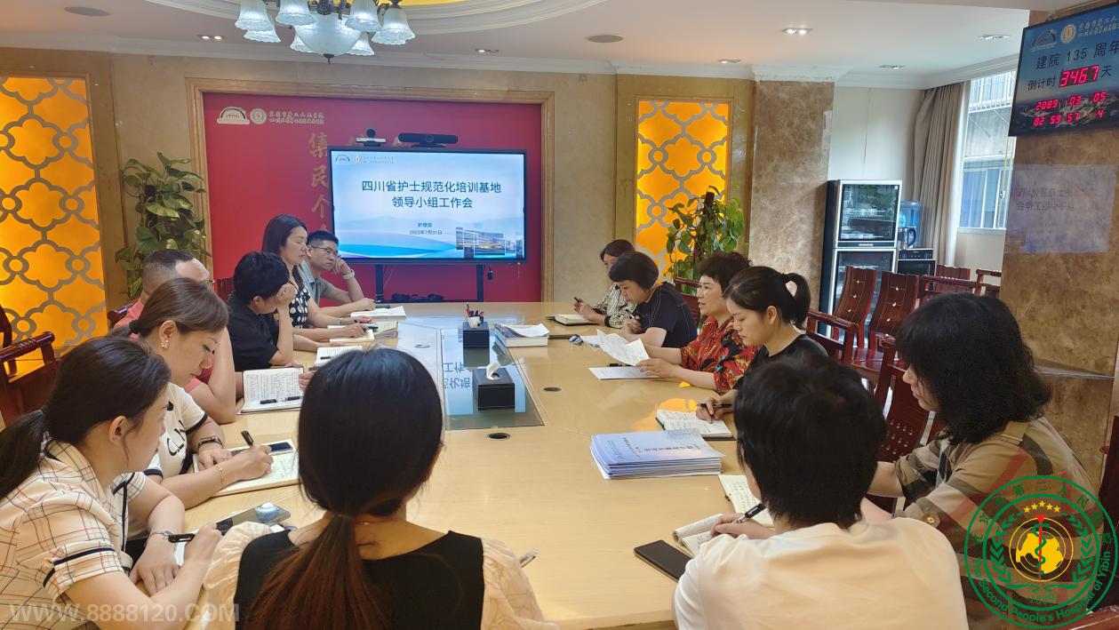 为贯彻落实四川省卫生健康委员会毕业后医学教育委员会办公室《关于开展2023年四川省护士规范化培训基地现场评估工作的通知》文件要求,7月31日下午,宜宾市第二人民医院·四川大学华西医院宜宾医院(简称华西宜宾医院)在四楼会议室召开2023年四川省护士规范化基地迎检工作会。院党委副书记陶莲德,护理部主任吴运莲,护理部副主任赵晓玲、刘昌林,相关职能部门负责人及基地教学管理人员参会。