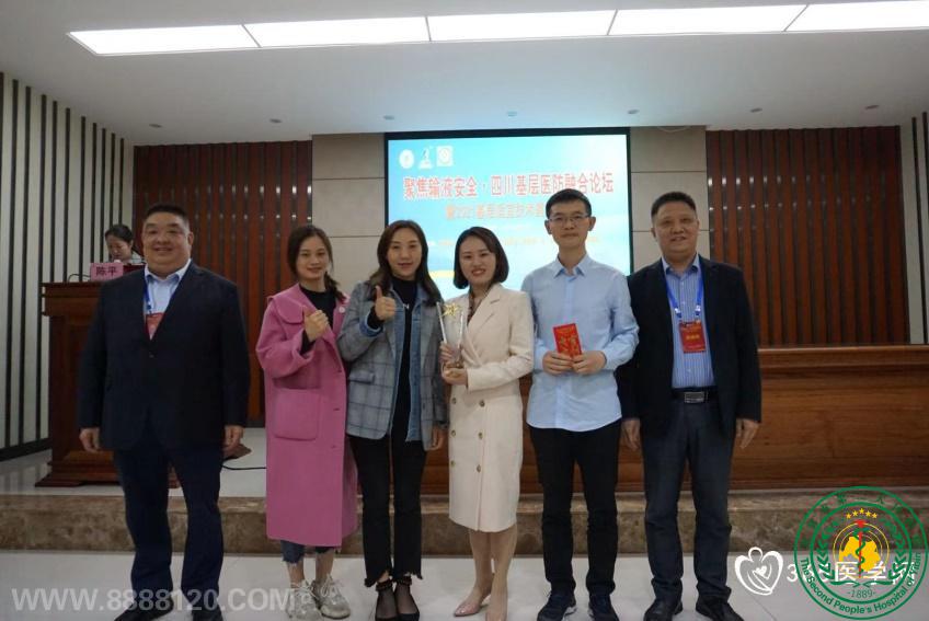 2021年4月17日下午,为积极响应中共中央、国务院《“健康中国2030”规划纲要》,坚持“共建共享、全民健康”的战略主题,由四川省老年医学学会基层医疗服务专委会及南溪区卫健委主办的“聚焦输液安全.四川基层医防融合论坛暨2021基层适宜技术遴选会议”在宜宾市南溪区顺利召开。本次会议邀请了西南医科大学护理部李秀莲主任等专家们授课,来自宜宾市七县三区各医院的护理专家、静疗骨干们齐聚一堂,共论输液安全。 本次会议分为学术交流和演讲比赛两部分。由我院肿瘤中心护理组长陈曦、静疗骨干陈媛月、柴勇、范亚兰老师组成的团队,用《“拴”无忧 更安全》为题,将科学的内容结合健身操的表现形式进行呈现,引起全场轰动,勇夺一等奖,展现了我院肿瘤人践行第27届肿瘤防治宣传周主题:健康中国 健康家——关爱生命,科学防癌,把科学以科普的方式进行大众推广,推动以家庭为单位、成员间互相支持的抗癌、防癌健康文明生活新方式。