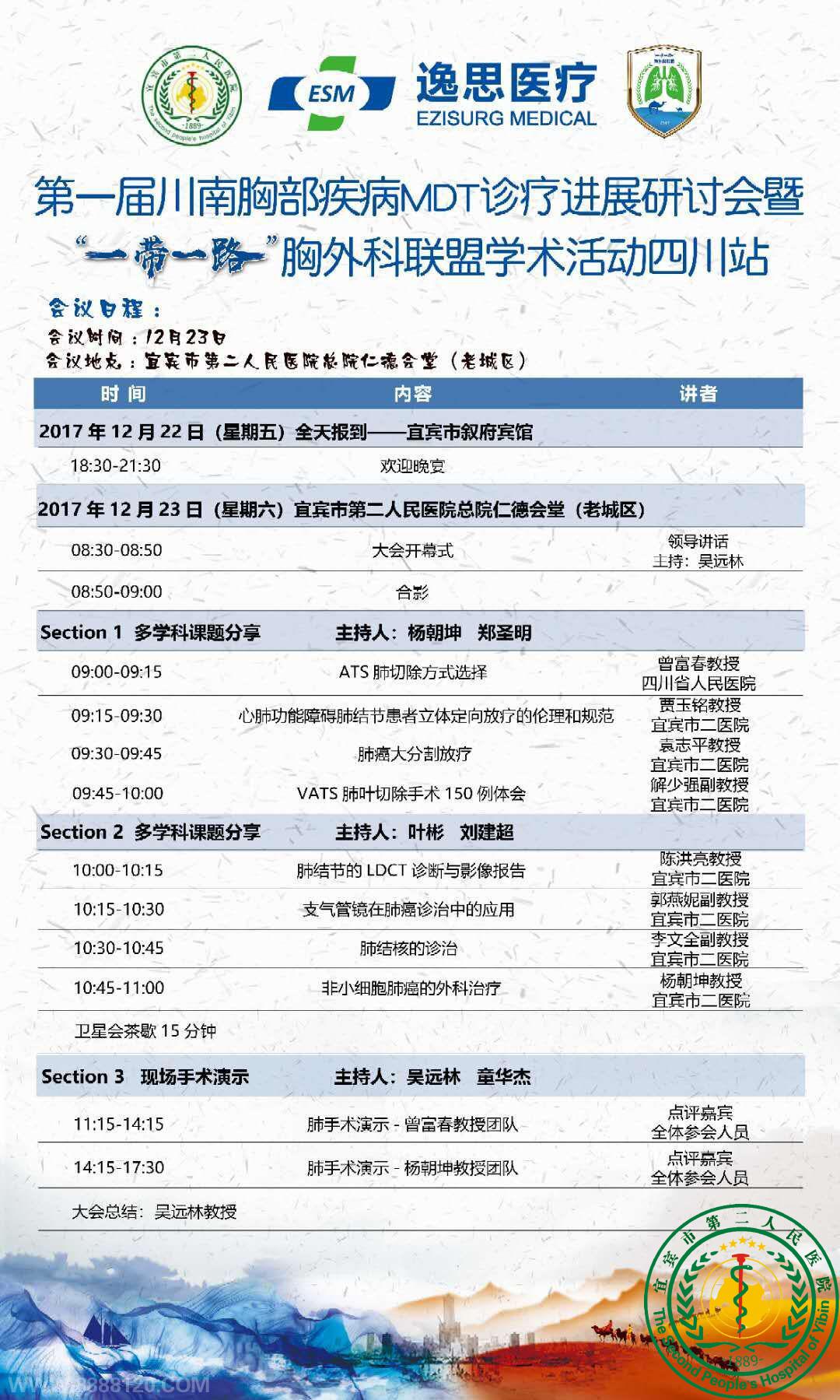 “第一届川南胸部疾病MDT诊疗进展研讨会暨一带一路胸科联盟学术活动四川站-肺癌MDT研习班”于2017年12月2日在宜宾市第二人民医院仁德会堂隆重举行并圆满成功