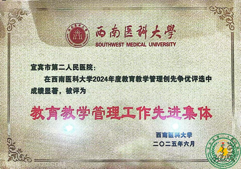 宜宾市第二人民医院荣获西南医科大学2024年度教育教学管理先进集体61811