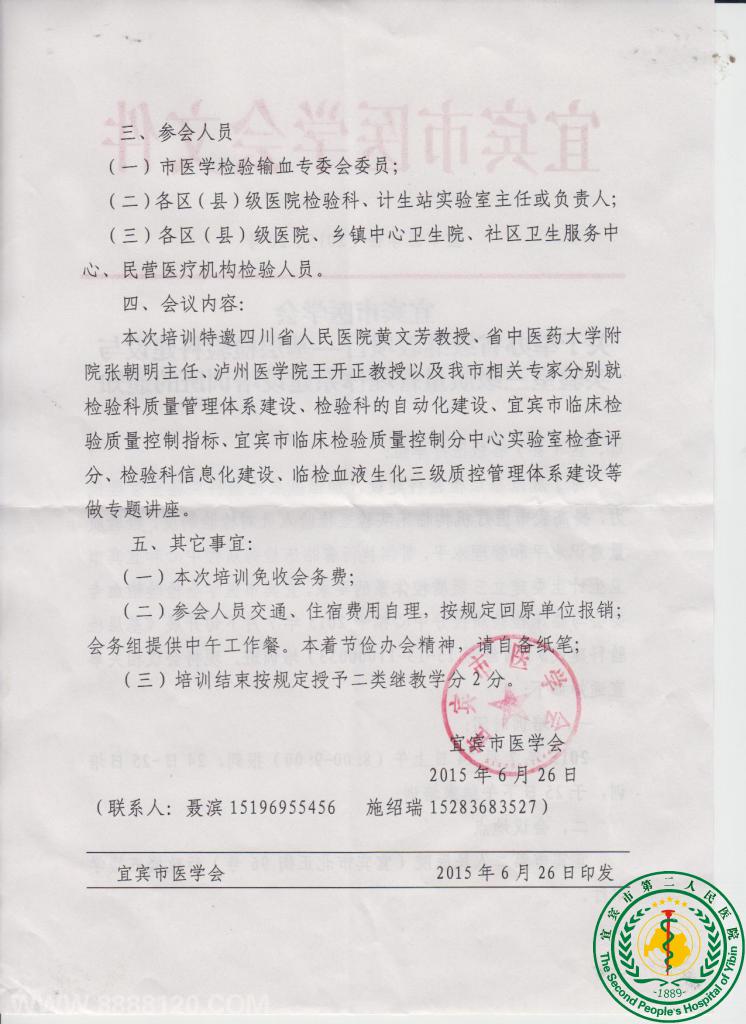 宜宾市医学会关于举办省级继教项目——基层检验科建设与实验室三级质量管理体系建设培训班通知9881