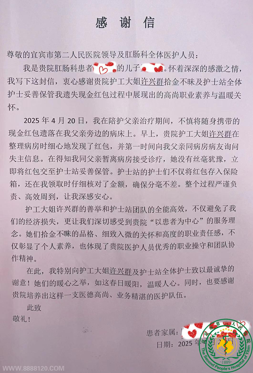 肛肠外科暖心守护 拾金不昧赢致谢