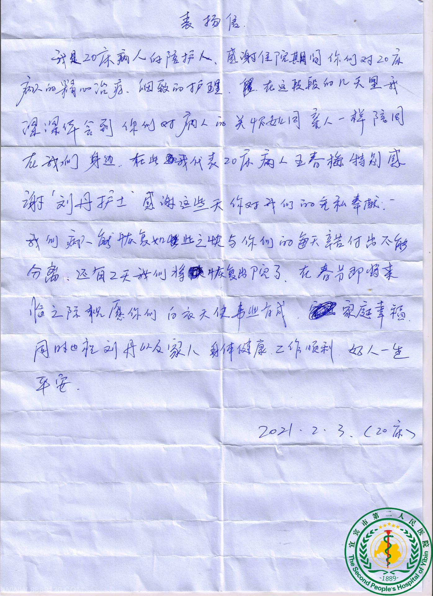 一封外科病房表扬信
