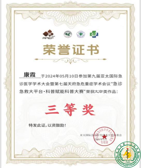华西宜宾医院在第9届亚太国际急诊医学学术大会荣获多项佳绩55786