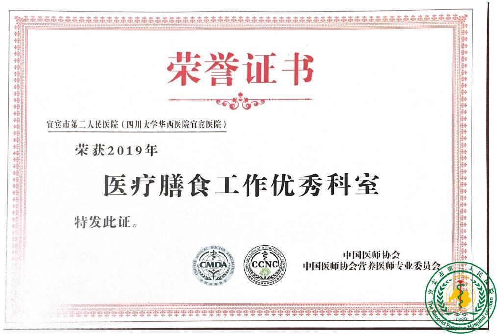 祝贺我院临床营养科荣获2019年中国医师协会营养医师专委会“医疗膳食工作优秀科室”奖20828