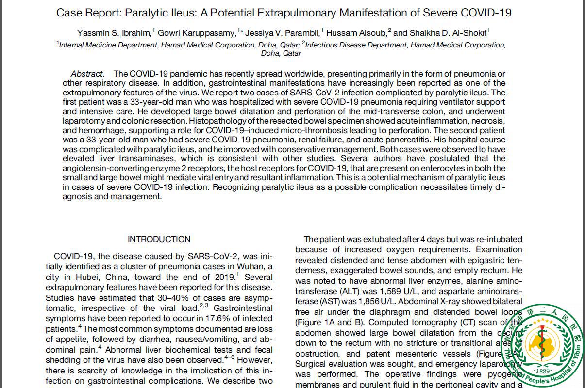 Case Report: Paralytic Ileus: A Potential Extrapulmonary Manifestation of Severe COVID-1931829