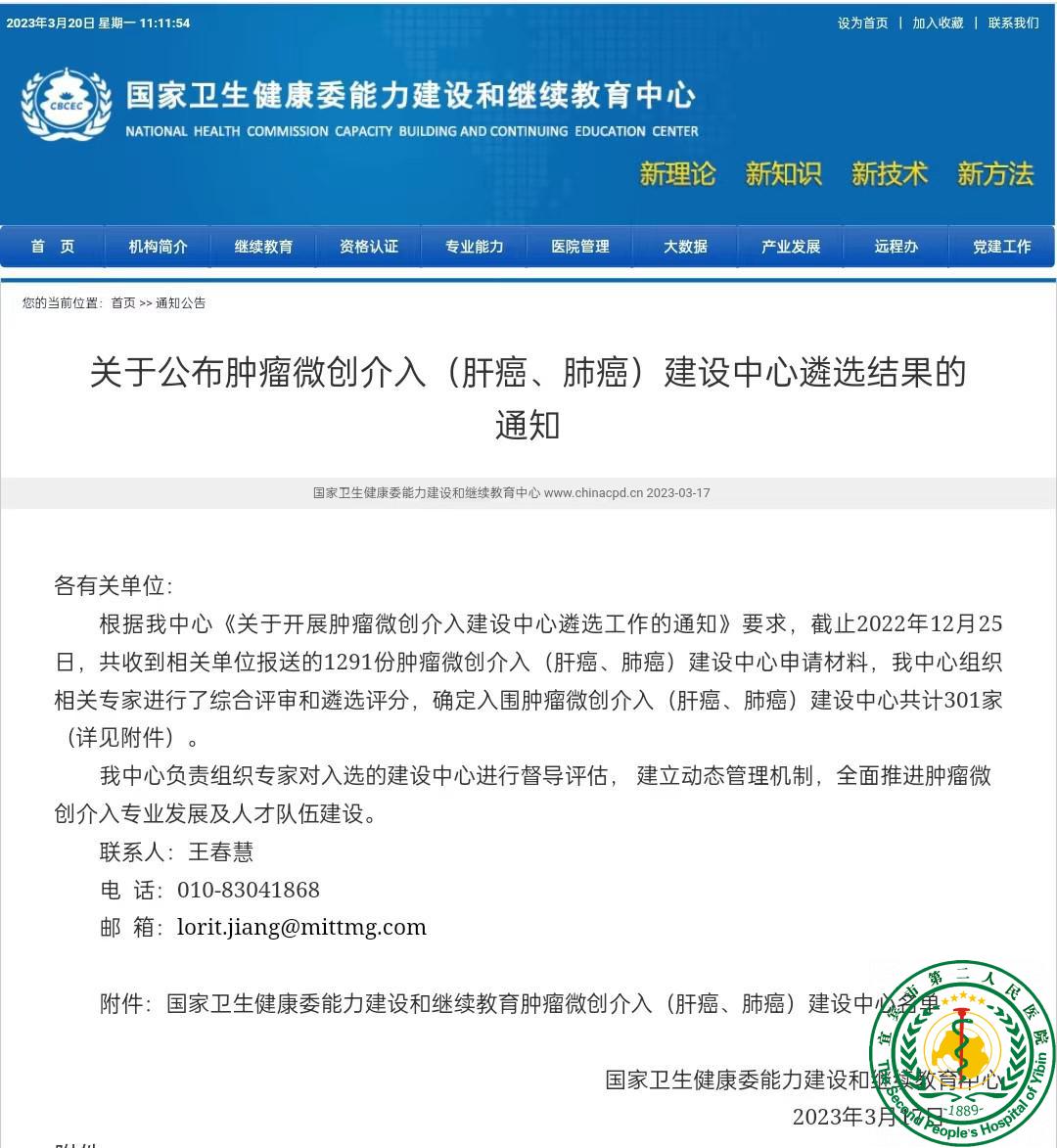 我院介入科获得国家卫生健康委能力建设与继续教育3大建设中心47879